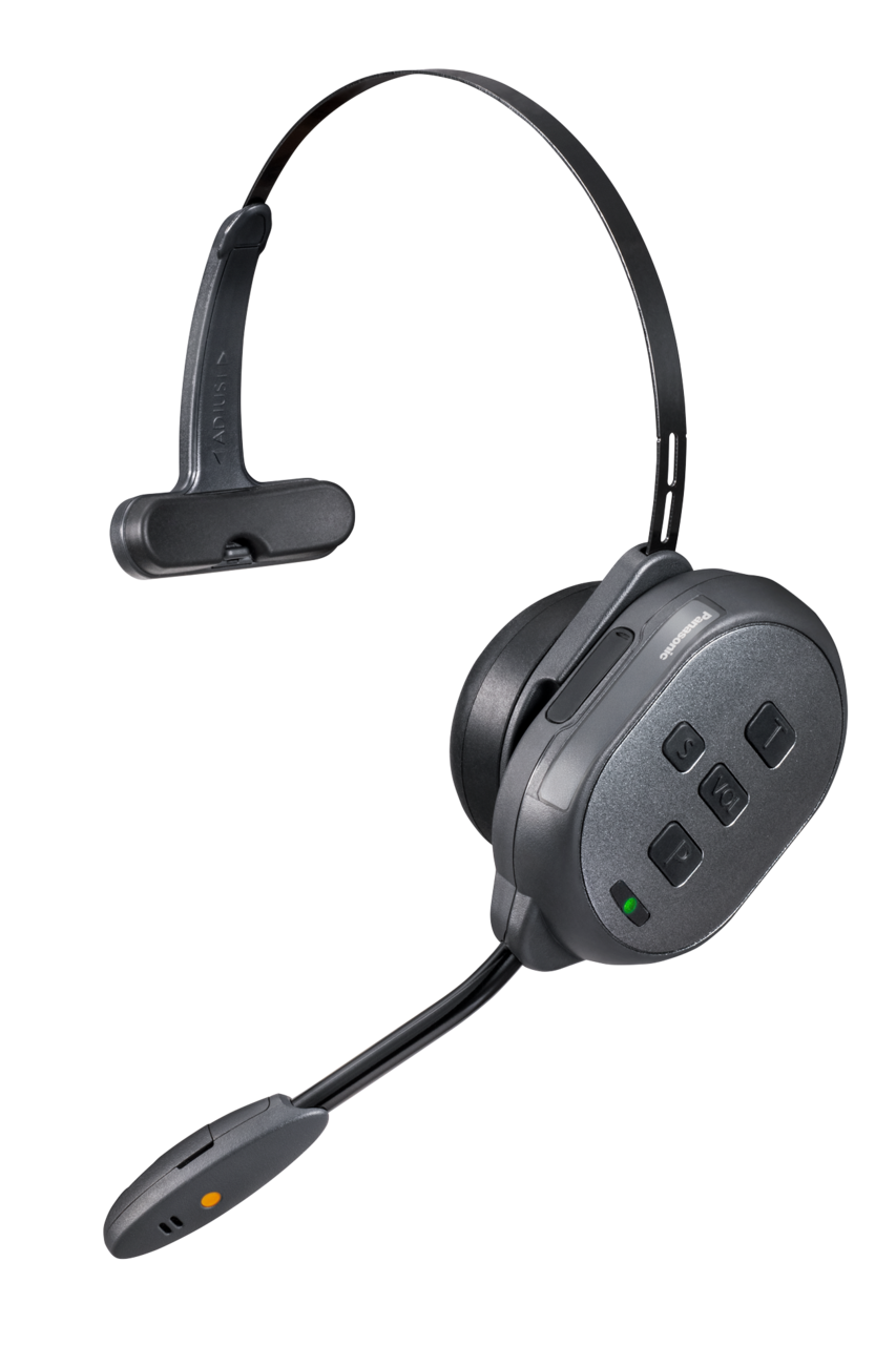 アンテナ、送信機、受信機を内蔵したオールインワンヘッドセット1.9GHz帯を採用し、安定した通信を実現ワイドバンド(100Hz~7kHz)で聞き取りやすい音声を実現